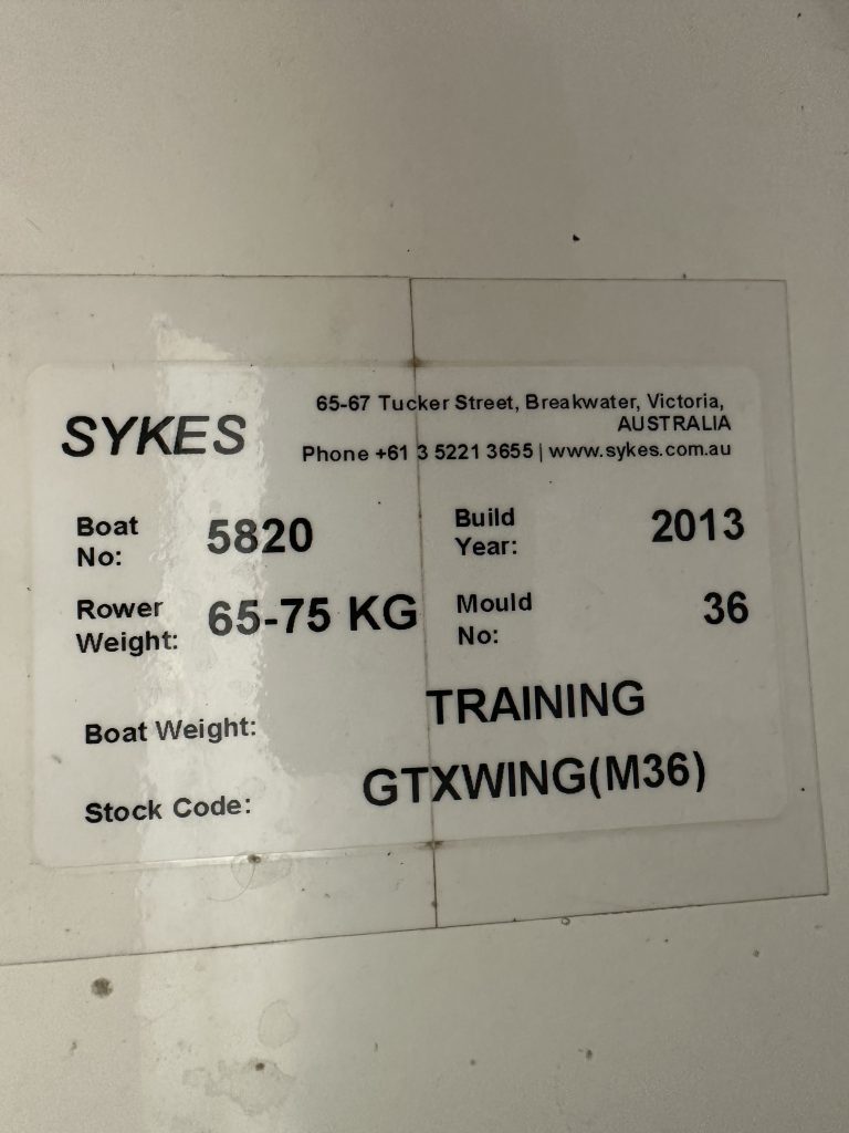 2 x 2013 Sykes Tracer Single Sculls. Mould 36 (athlete weight range- 65kg- 75kg)