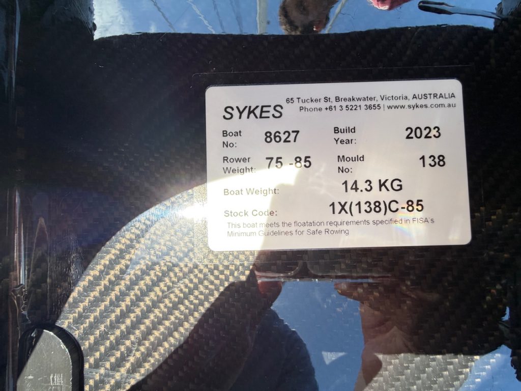 75-85 Kg Full Carbon boat with Reverse Carbon wing rigger. Boat has had very little use, and is in very good condition. Full elite covers.