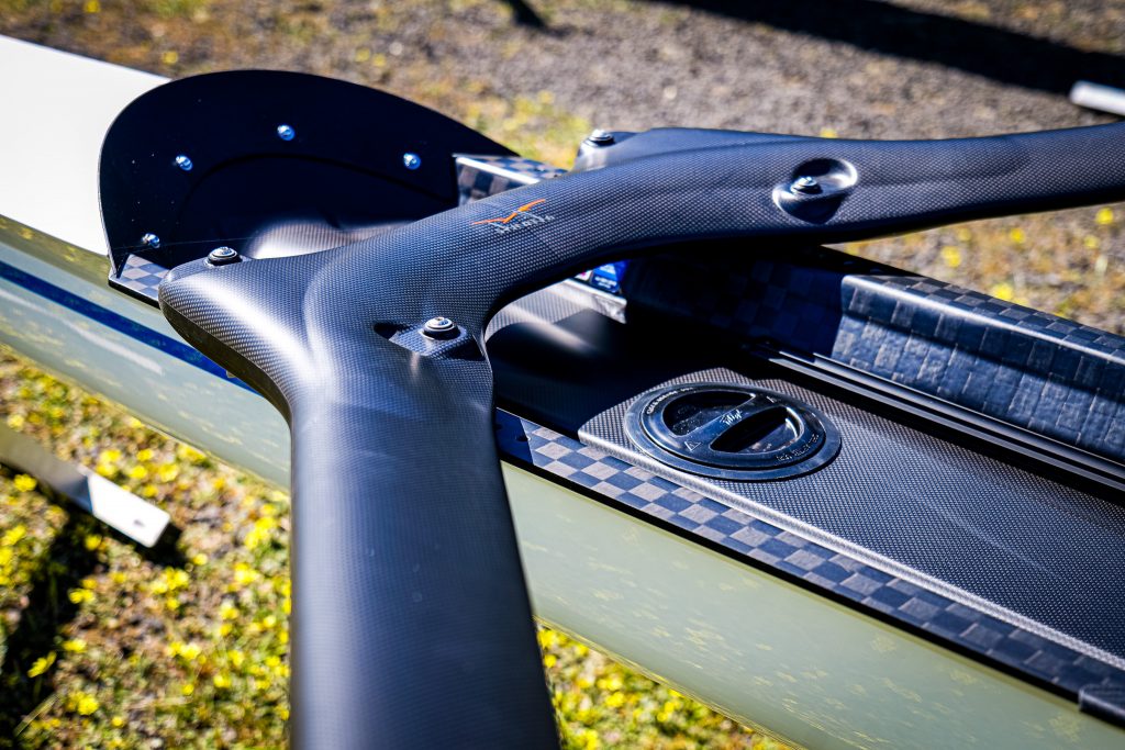 Includes: Monolithic one piece Carbon Footstretcher, Carbon shoe plate with adjustable splay, Carbon fin, Reverse carbon wing rigger and rigger cover included