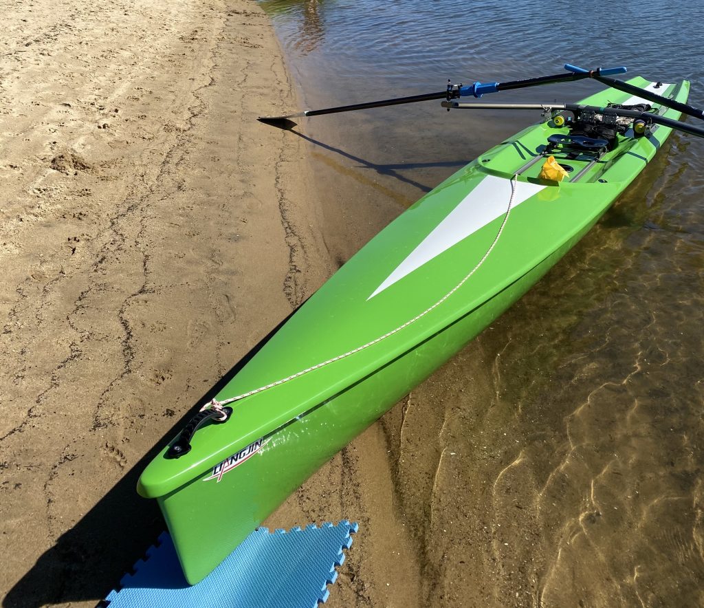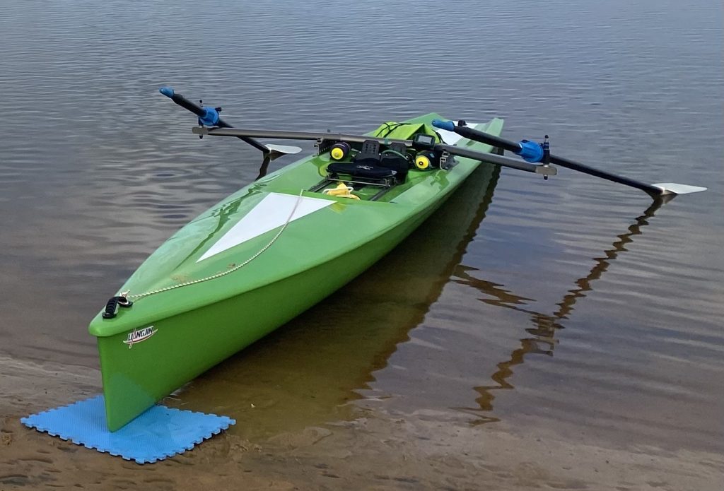 Langjin Coastal single scull for sale. Oars, and boat cover included. Excellent condition. Boat weight – 36kg