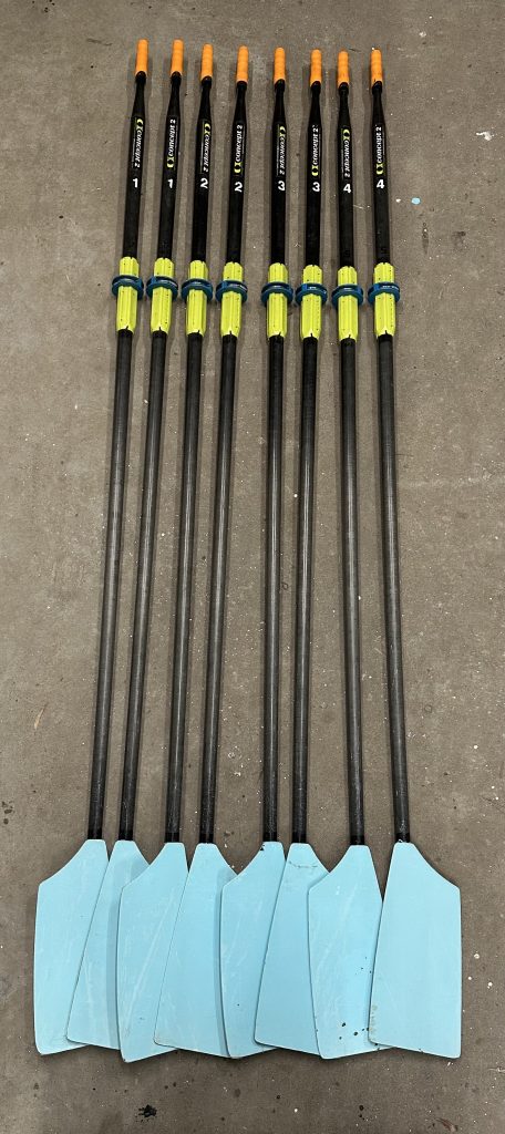 2 sets of quad sculling oars (Concept2). Year: 2008. Blades: Smoothie 2 plain. Lengths: 285–290cm. Condition: Good – Selling as part of equipment turnover plan