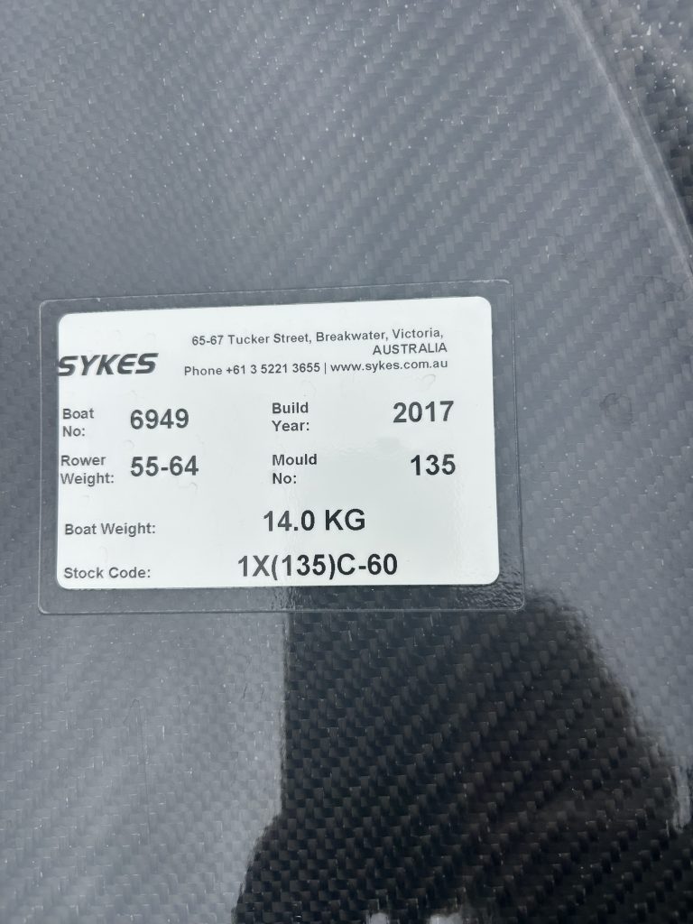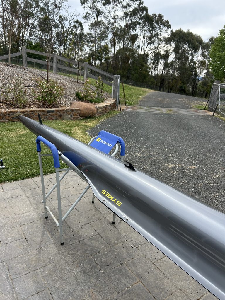 Former AIS 2017 Sykes single scull with impeller. Mould 135. 55-64 kg rower weight. ‘Shark grey’ in colour with yellow stripes. Owned by me since 2020. In excellent condition. Very stable, fast, eye catching boat.