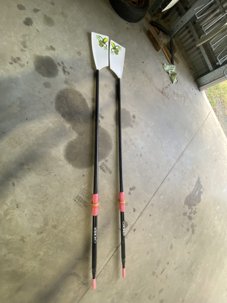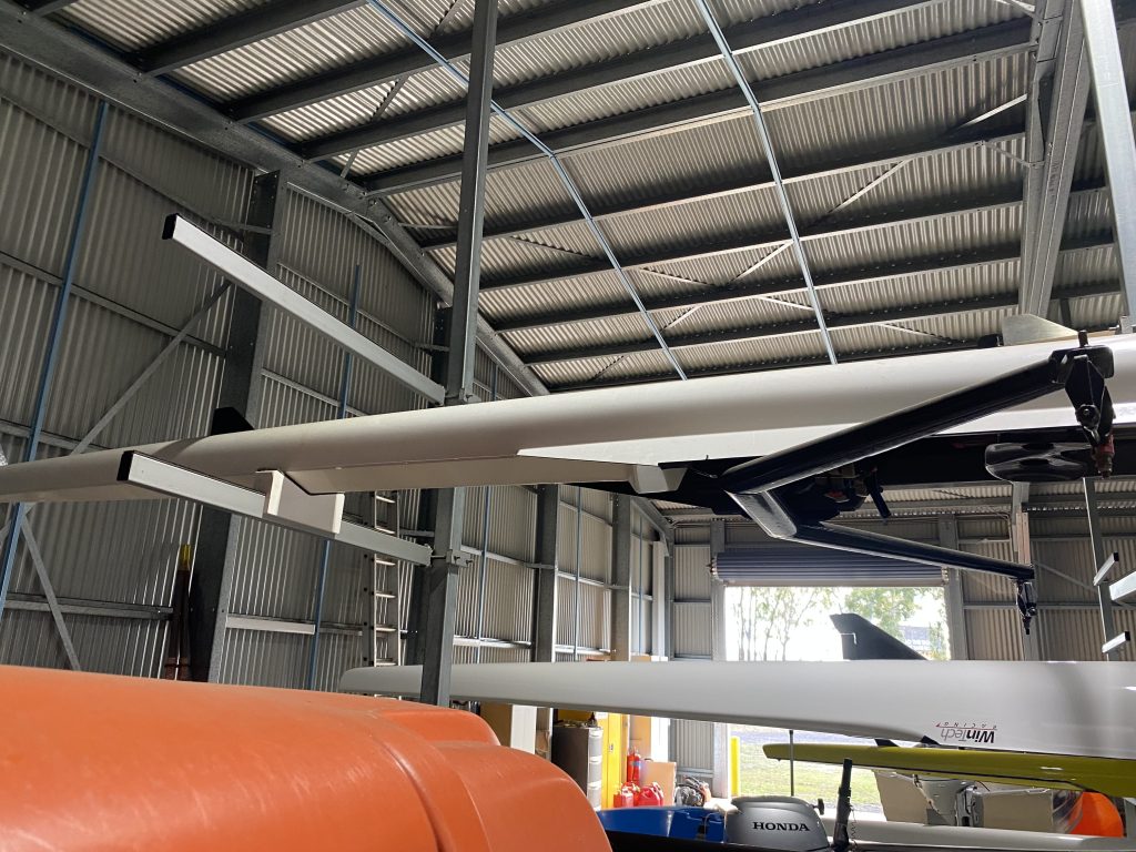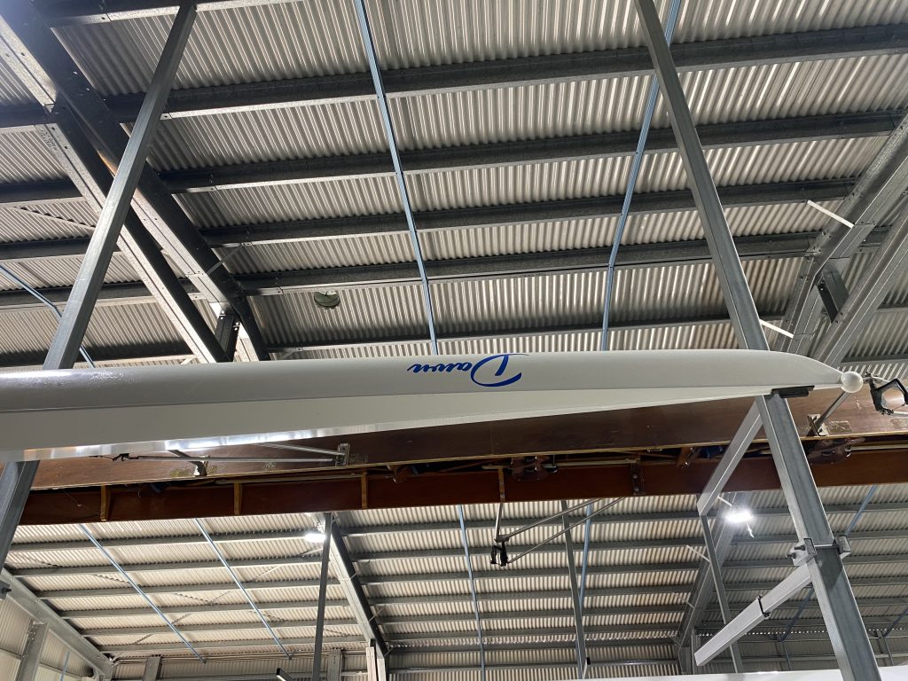 Sykes single scull for sale. Exact age unknown, but likely around 20 years old. Athlete weight: 60-80kg. Stern mounted aluminium wing rigger. In good condition, and includes all fittings (shoes, seat etc)